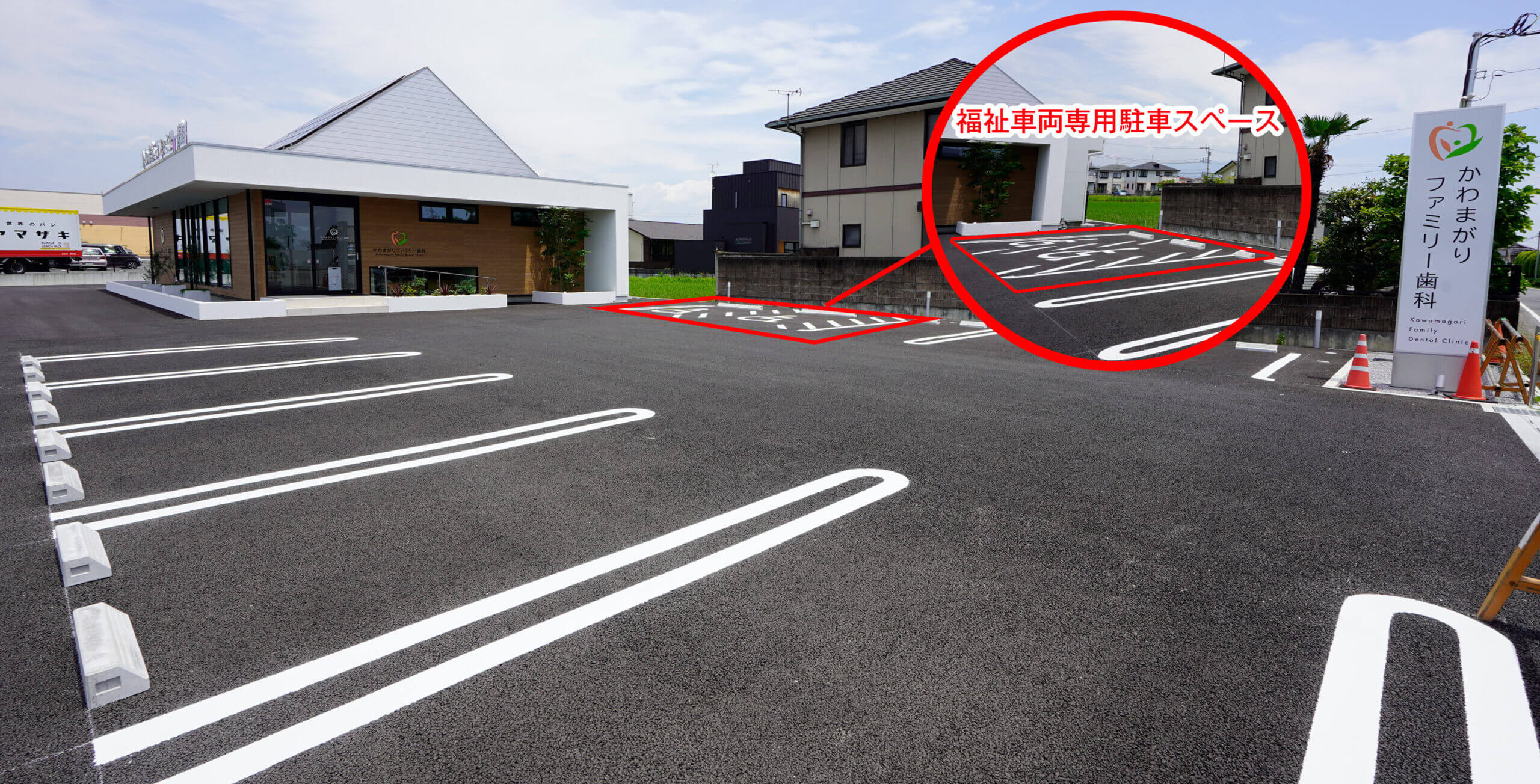 駐車場は医院前の2台が車椅子の方専用(福祉車両専用)スペース、他8台が一般車用スペースとなります。